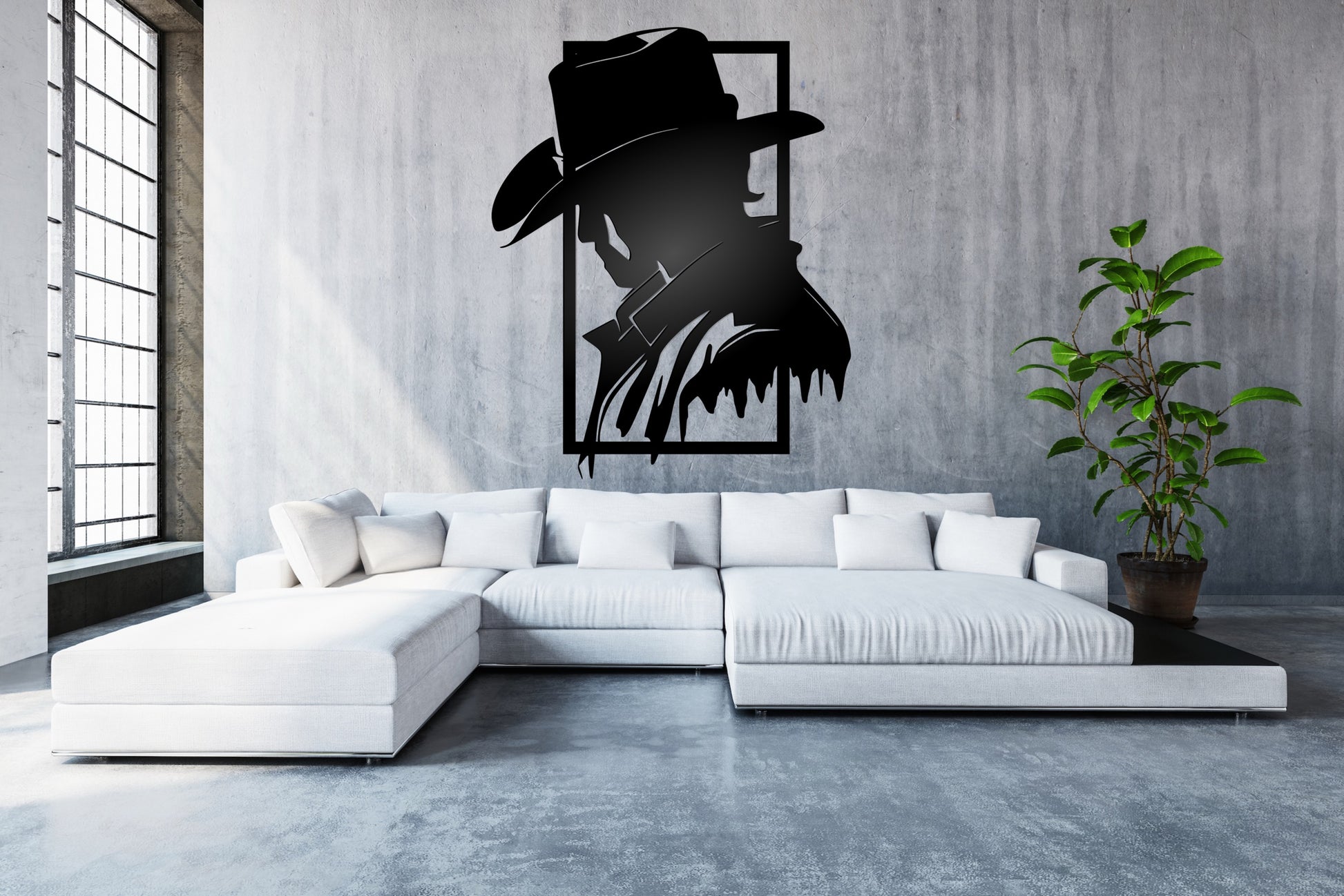 This 48x48" black wildwest -inspired metal sign features precise laser cutting and a rustic, weathered finish that adds authentic character.